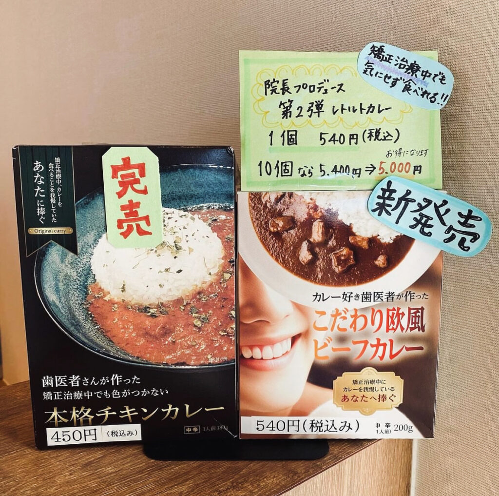 現在は、2023年9月11日より販売しております「カレー好き歯医者が作ったこだわり欧風ビーフカレー」のみの販売となっております。こちらもおかげ様でご好評をいただいております。