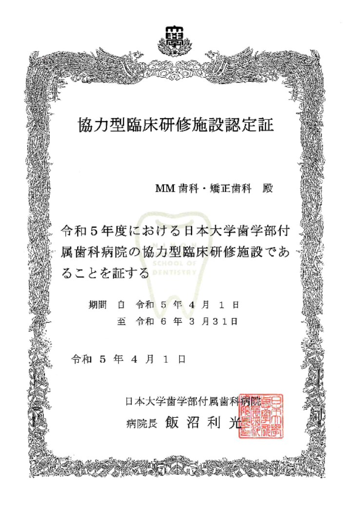 実は今年度よりMM歯科・矯正歯科は母校である日本大学歯学部付属歯科病院の臨床研修施設となりました!!(最近事後報告が多くて大変申し訳ありません。笑)