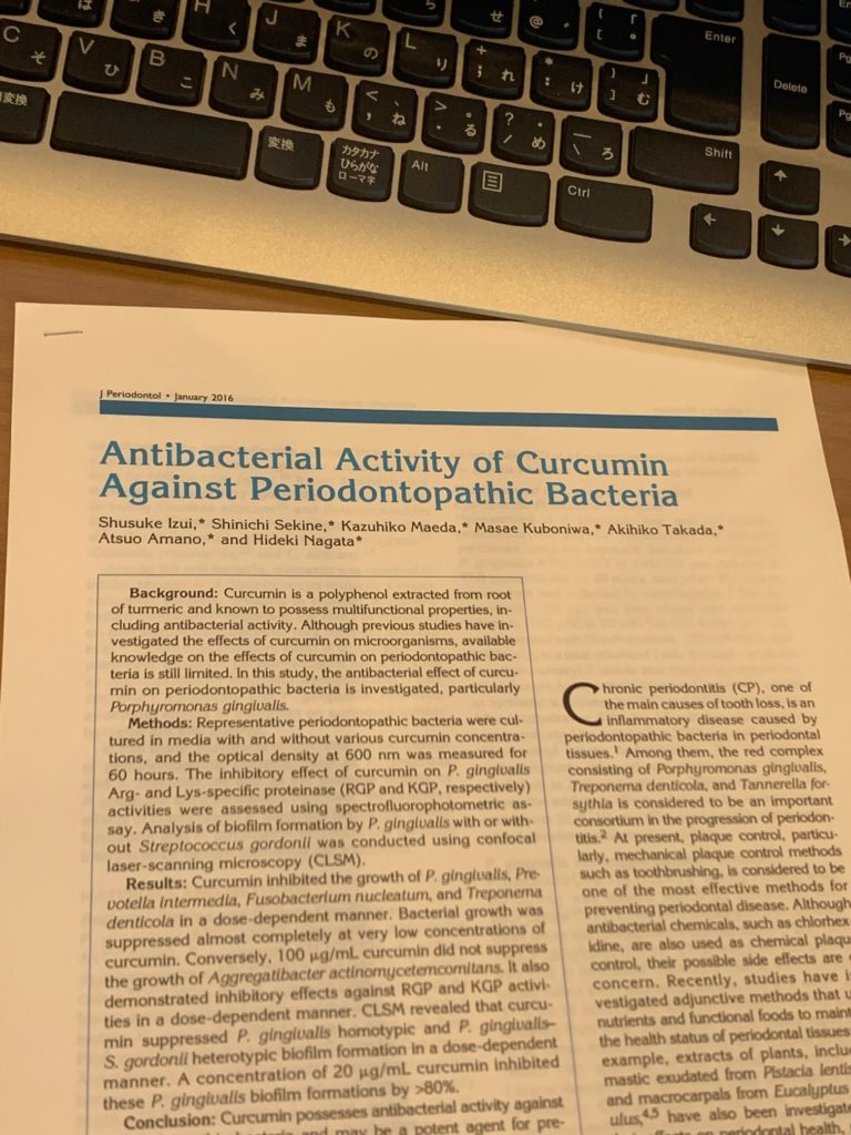 そこに着目し、歯周病原菌に対するクルクミンの効果を調べた論文がいくつかあるのです。