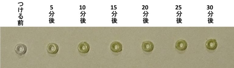 5分後には着色し、15分以降はさほど色の変化はないことが確認できました。
