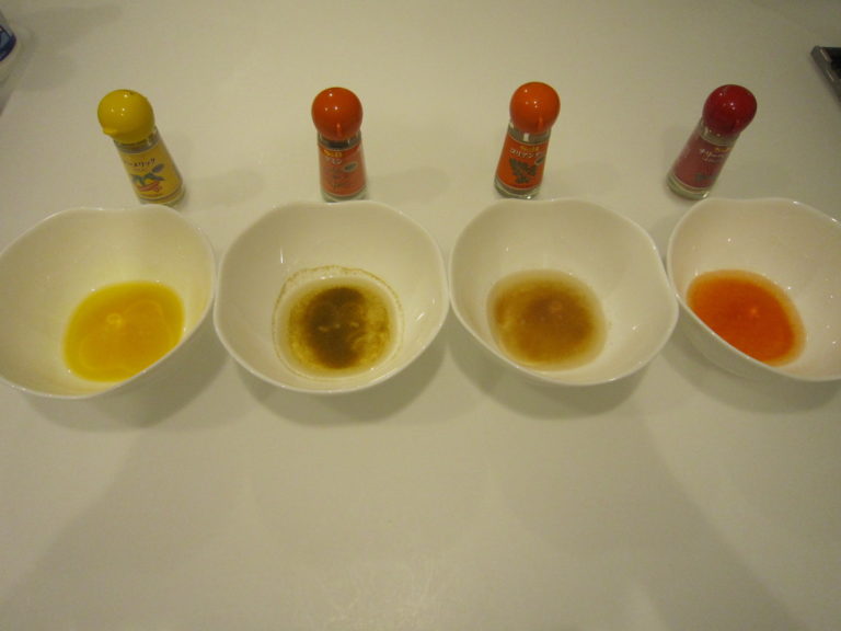 今回はカレーの成分のうち、着色に影響がでそうなものとしてスパイスに注目しました。